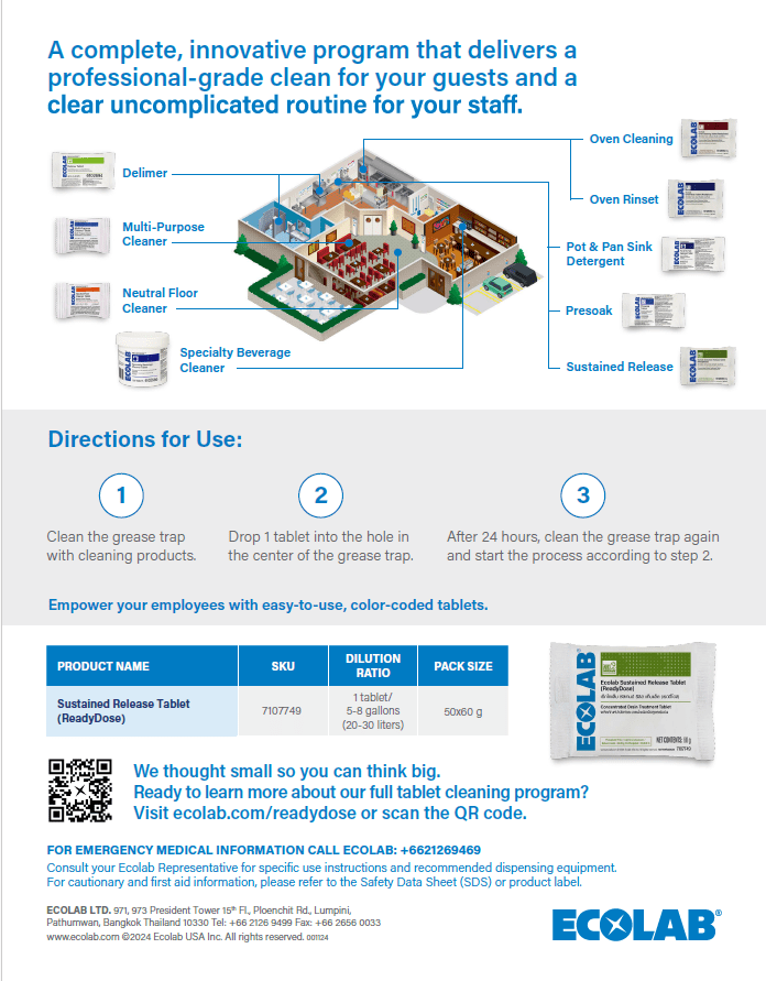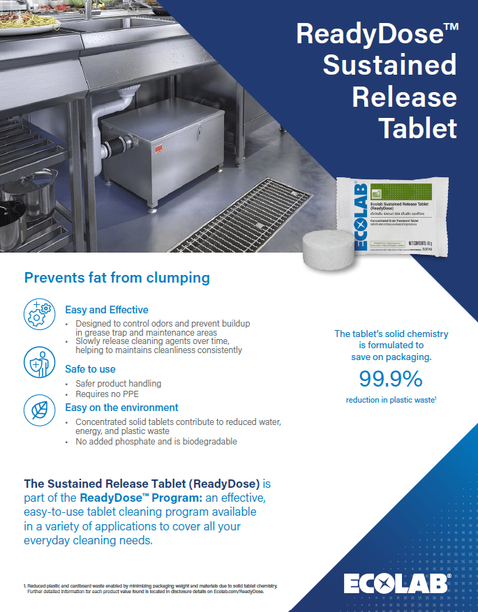 ผลิตภัณฑ์ย่อยสลายไขมันและลดกลิ่น ในบ่อดักไขมัน แบบเม็ด จากแบรนด์ Ecolab