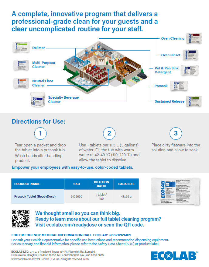 ผลิตภัณฑ์แช่ช้อนส้อม เพื่อย่อยสลายคราบอาหาร สูตรเอนไซม์ จากแบรนด์Ecolab